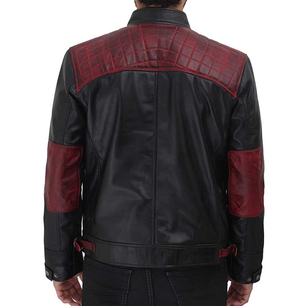 Rollins Black and Maroon Lambskin Leather Moto Biker Jacket Men